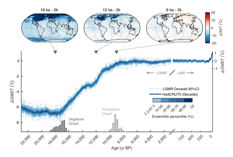 末次冰盛期以来全球地表温度解析(化石网报道)据中国科学报:过去2.4万年的气候变...