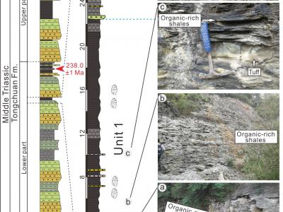 研究剖面柱状图与野外露头照片(化石网报道)据中国科学院南京地质古生物研究所:鄂...