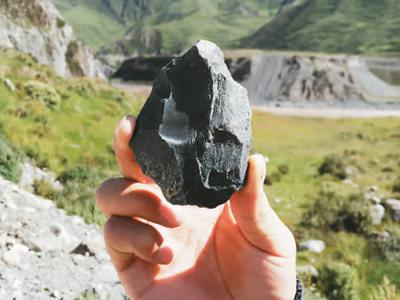 通天河流域发现的打制石器(本文图片皆由受访者提供)考察队员在通天河岸边研究石器...