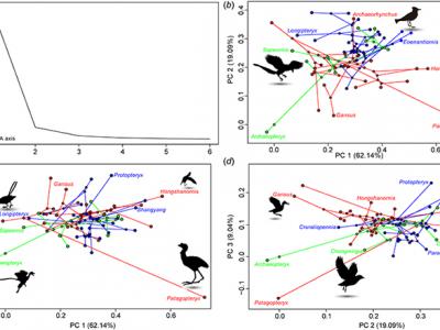 中生代鸟类体型空间分布(王敏 供图)中生代鸟类形态空间(离散特征)分布 (王敏 ...