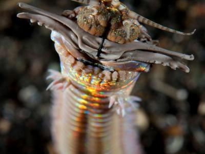 猎食性的博比特虫可长到3公尺长。图中这只摄于印尼的伦贝海峡(Lembeh Strait)。 ...