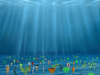 约6亿年前的远古海洋复原图。中科院南京地质古生物研究所供图(化石网报道)据新华...