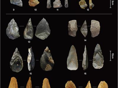中更新世气候转型期的代表性石器(1-12,高纬度地区的小型工具;13-18,中低纬度地...