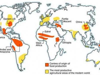 现在和古代的农业中心(引自Diamond和Jared 2002年发表的文章)(化石网报道)据中...