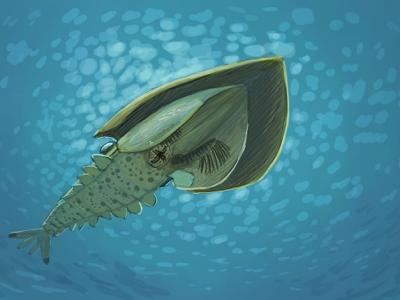 线纹心虾Cordaticaris striatus艺术复原图(绘画Joschua Knüppe)线纹心虾Cordati...