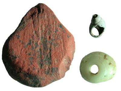 红赭石与贝壳珠子一同从斯里兰卡雨林中的法显洞早期遗址出土。 这座遗址出土的最古...