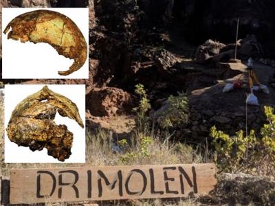 德里莫伦洞穴曾出土直立人(上小图)及傍人(下小图)等头骨(...
