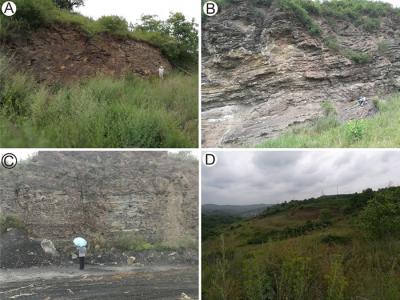 云南(A、B、E)、广西(C、D)早泥盆世地层中的紧贴扁囊蕨标...