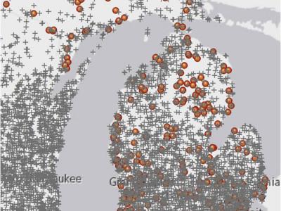密歇根普列斯特世的活动区域。三角形是长毛象,圆圈是乳齿象的地方。(Anthrome da...