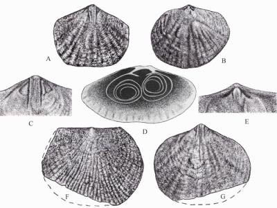示易变稀少贝的腹、背壳的壳表形态与内部构造扬子区上奥陶统五峰组顶部稀少贝组合地...