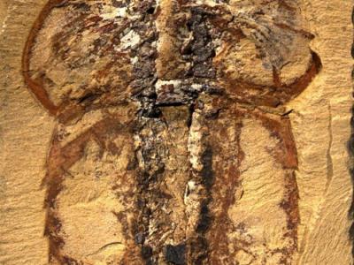 寒武纪澄江生物群中的刺状纳罗虫化石(上图个体体长21毫米)。修改自Zhai et al., ...