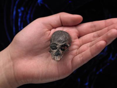 置于掌心的卡拉斯科智利猴的头骨化石。(AMNH/N. Wong and M. Ellison 供图)每个头...