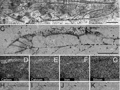 短脉螽科昆虫化石翅膀的扫描电子显微成像及能谱分析:电子束Z...