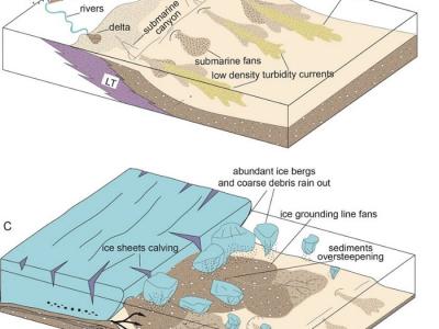 南坨冰期演化模式图华南南沱组沉积序列柱状图(中国化石网报道...