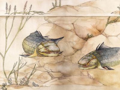 短耳褶纹鱼生活复原(孔嘉仪绘)短耳褶纹鱼及其脑和...