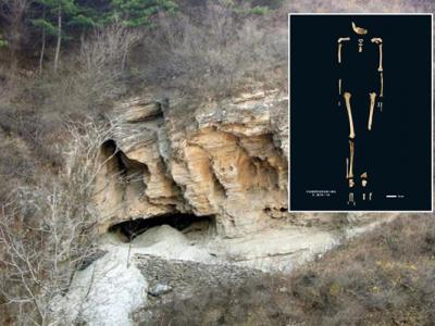 田园洞遗址外观图(付巧妹供图)田园洞人骨架图(付...