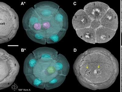 瓮安生物群中动物胚胎化石的细胞核结构。途中所示一...
