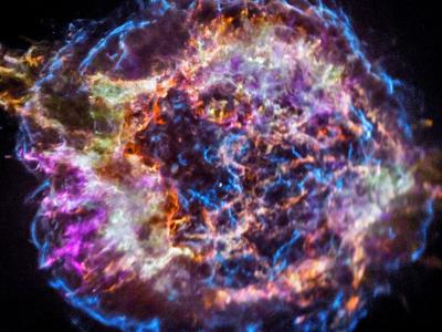 仙后座A(Cas A)的图像,这是大约300年前爆炸的一颗大质量恒星的残骸。一项新的研...