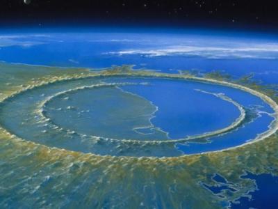 艺术家为6600万年前小行星撞击事件发生后很快形成的希克苏鲁伯撞击坑绘制的重建图...