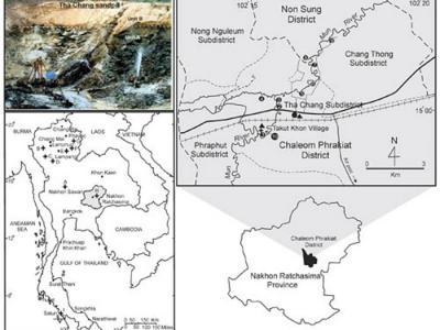 泰国的长鼻目化石地点 (邓涛供图) 在塔昌发现的轭齿象上第三臼齿 (邓涛供图...
