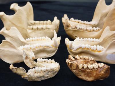 旧大陆猴下颌骨,巨猿是这项研究的一部分。(Photo by Leslea. Hlusko) 现存和...