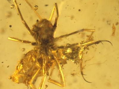 草蛉幼虫 蝶角蛉幼虫 蜘蛛正在捕食蝶角蛉幼虫 (中国化石网报道)据中国科...