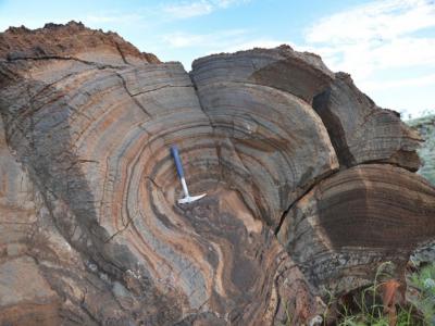 如图所示,这是27亿年前古澳大利亚州的一处叠层石,其历史可追溯至27亿年前,显示...