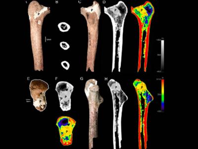 蒙自马鹿洞遗址及其出土的人类化石 马鹿洞人类股骨及其CT图像 马鹿洞人类股...