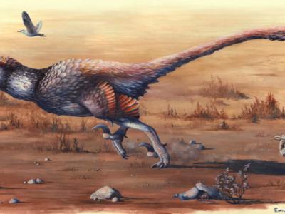 对中国早白垩世(约1.25亿年前)一只幼年董氏豪龙的艺术复原。图片来源:法比奥·马...