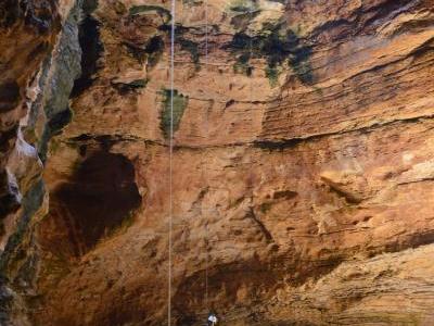 沿绳降入怀俄明州的Natural Trap Cave,- Alan Cooper 下降了100英尺间距至NTC来...