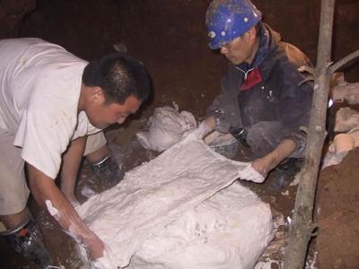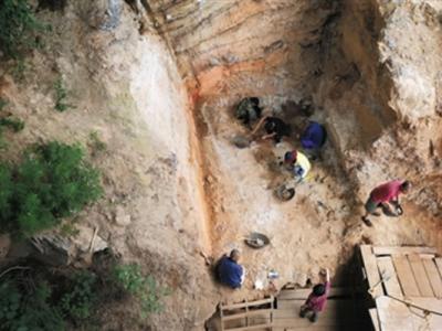 昨日,工作人员在周口店猿人洞进行发掘。当天,周口店遗址第1地点(猿人洞)抢救...