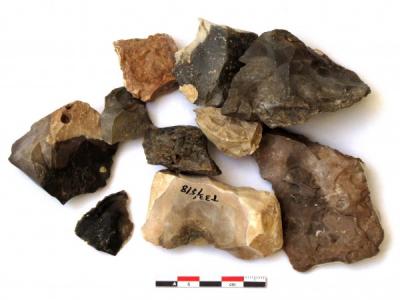 数万年前尼安德特人使用的刮擦和磨碎的赭石蜡笔。(比例尺:1厘米) (图片来源:d...