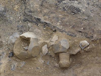 可能是蹄兔的对接拖拽痕迹;中心右侧的特征被解释为可能是粪石(粪便化石)。 (图片...