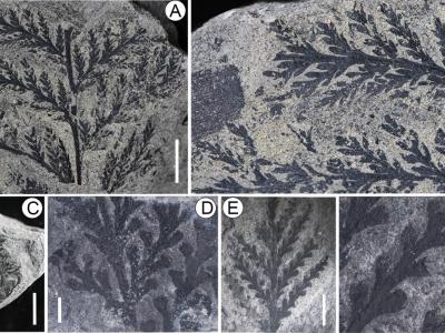 图1.新采集自辽宁铁法盆地下白垩统的高腾刺蕨Acanthopteris gothani Sze标本。A,B,...