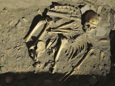法国圣礼拜堂一位尼安德特人的葬礼重建。(图片来源:DEA/A.DAGLI ORTI,盖蒂图片社...