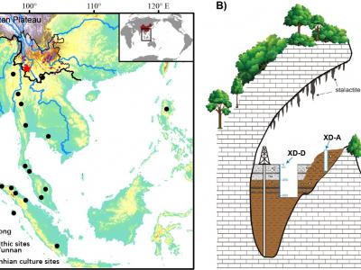 一张描绘发现古代海底的地区的地图。图片来源:王静川,马里兰大学。(化石网cnfos...