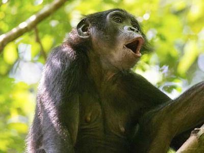 倭黑猩猩用“高亢的叫声”发出警报。(刚果民主共和国万巴)。图片来源:KyotoU/Sh...
