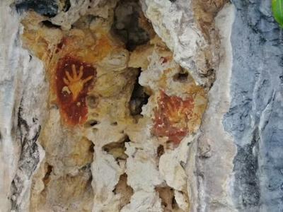 拉贾安帕群岛上年代不详的手模。这些岛屿的研究揭示了早期人类历史。(图片来源:T...