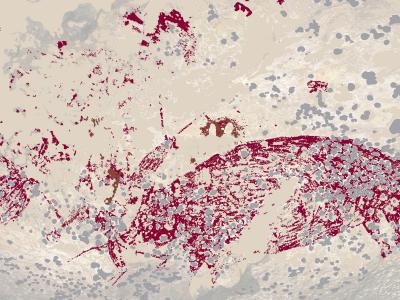 印度尼西亚苏拉威西岛上的一幅描绘猪和类人形象的洞穴画。图片来源:格里菲斯大学(...