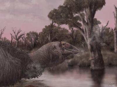 来自偏远的南澳大利亚中部的Genyornis头部插图。来源:J Blokland,弗林德斯大学(...