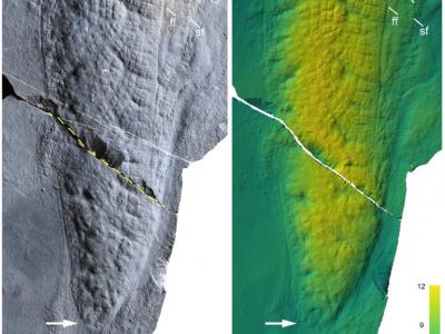 螺旋网格海绵化石照片(a)与激光扫描高程图(b)螺旋网格海绵复原图螺旋网格海绵和...