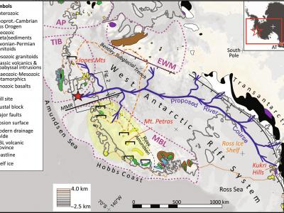 南极洲西部概览图。该地图显示了研究区域的冰下地形,包括主要地质单元和构造结构,...