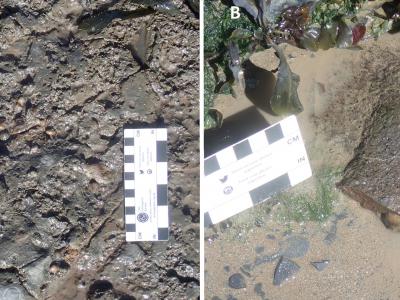 位于(A)Lavernock Point和(B)圣玛丽井湾的两个骨床的现场照片。Lavernock的基底...