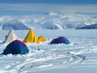 跨南极山脉中部埃兰特冰川上的野外营地。来源:John Goodge(化石网cnfossil.com)...