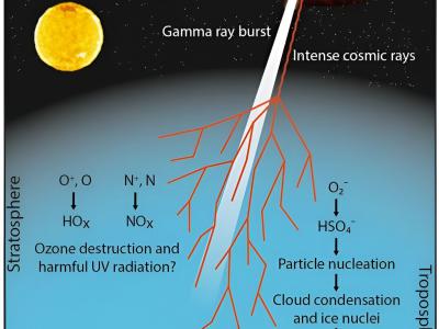 艺术家对II型超新星爆炸的印象。这些超新星产生伽马射线和强大的电离辐射,对生命构...