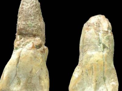 一块哺乳动物头骨化石,牙齿窝里的沉积物,原来是史前蜜蜂筑的巢穴。图片来源:拉萨...