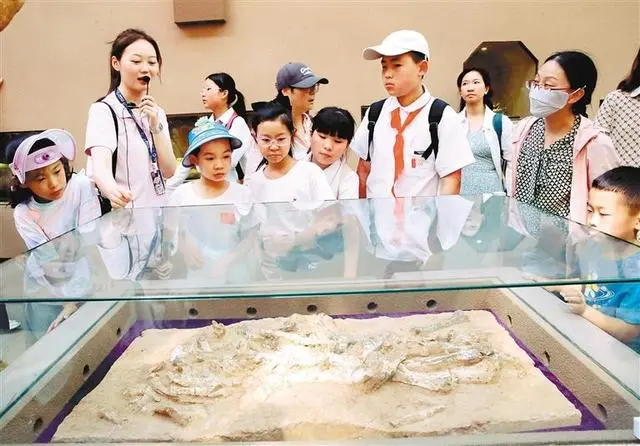 讲解员为前来参观的小学生讲述化石的故事(化石网cnfossil.com)据西安发布:化石如...