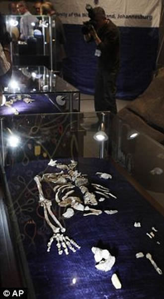 科学家表示,在南非一个洞穴里发现的名叫南方古猿源泉种(Australopithecus sediba)的古人类,长相酷似远古猿类动物,它们拥有长长的胳膊,但是髋部与人类很像,它们生活在大约200万年前,被称之为猿和人类之间“缺失的一环”。