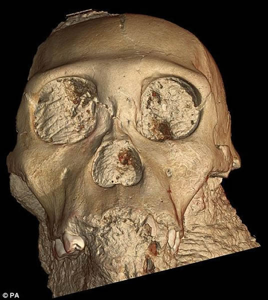 利用X光数据制成的南方古猿源泉种颅骨的3D复原图