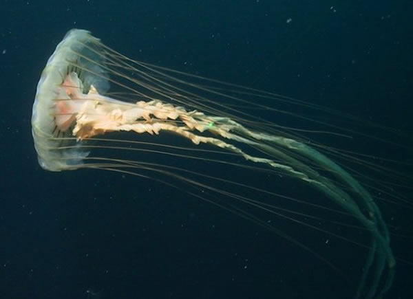 成年的水母在水中浮游的情形